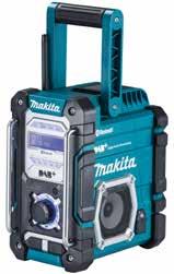 MAKITA BAUSTELLENRADIO DMR 112 MIT BLUETOOTH Für den Empfang von DAB, DAB+ und FM geeignet. Ein Aux-Anschluss für MP3-Kompatibilität und einen USB-Anschluss um Ihr Mobilgerät zu laden. Kann mit allen Makita-Li-Ion-Akkus 7,2 – 18 V betrieben werden, inklusive Netzteil 7085682