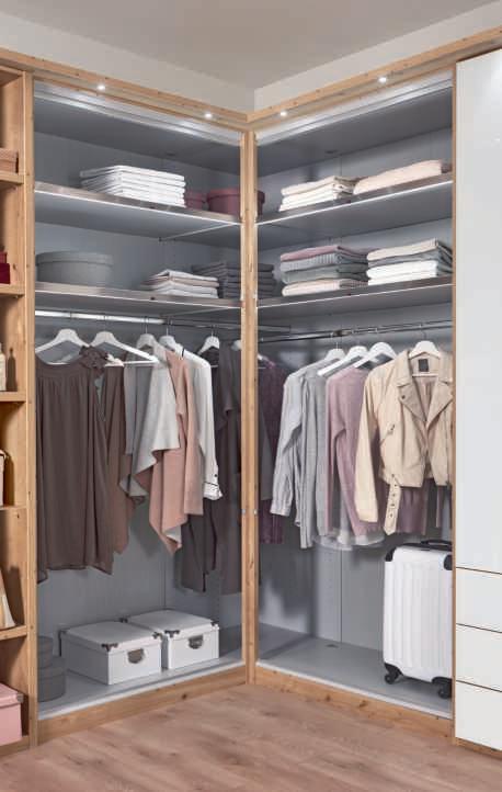 • Qualitativ hochwertiges Schranksystem bestehend aus Drehtüren-, Falttürenund Schwebetürenschränken sowie 4 Eckschranklösungen.