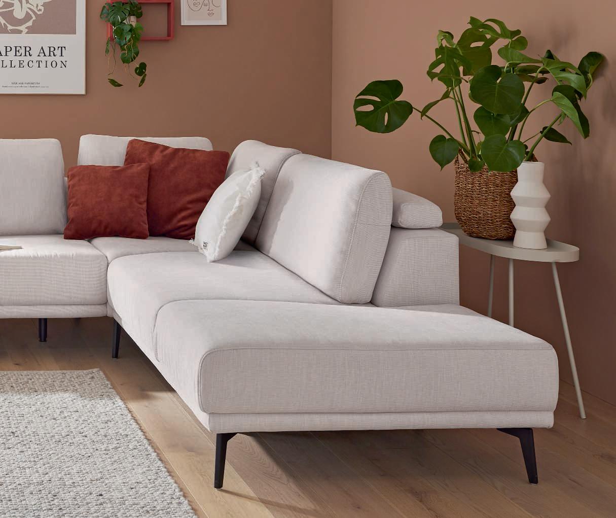 Interliving Sofa Serie 4400 - Eckkombination, Bezug Stoff Pastel violet, Metallfuß Edelstahloptik, best. aus: Chaiselongue mit Armteil links und 2-Sitzer mit Armteil rechts, inklusive Armteilverstellung an beiden Elementen, Stellmaß ca. 167x296-324 cm, Bezug: 100% Polyester. Ohne Zierkissen und Decke. M999004 001 314 5317
