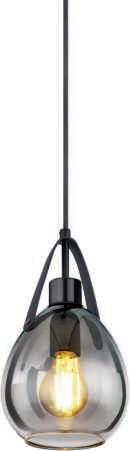 Interliving Leuchten Serie 9332 - Hängeleuchte, 1-flg., Metall schwarz matt, Rauchglas, mit Kunstlederbändern schwarz, 1x E27max. 60W, ca. Ø15/ H120 cm. Ohne Leuchtmittel. Abgebildetes Leuchtmittel nur Dekoration. 977649 003 000 000 je 34.95