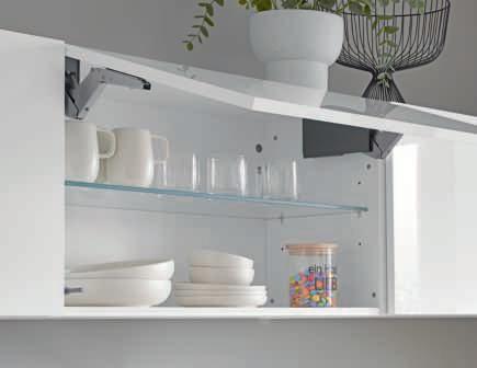Glasfronten in Weiß, Champagner, Kieselgrau oder mit Kristallspiegel
