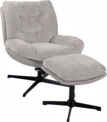 Relax-Sessel, mit Hocker, Bezug Kunstleder Sand (100% Polyester), hochwertiges Fußkreuz aus Metall schwarz, ca. 93 cm breit.