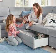Das Extra an Platz: Der klappbare Stauraum ist optimal für Kissen und Decken. Gegen Mehrpreis 199.-