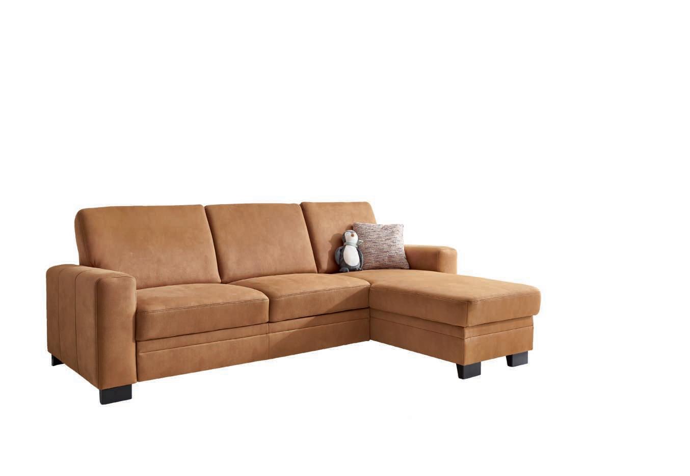Bezug Stoff Deluxe zimt, Metallfuß schwarz, best. aus: 2,5-Sitzer mit Armteil links und Canapé mit Armteil rechts. Stellmaß ca. 248x163 cm.