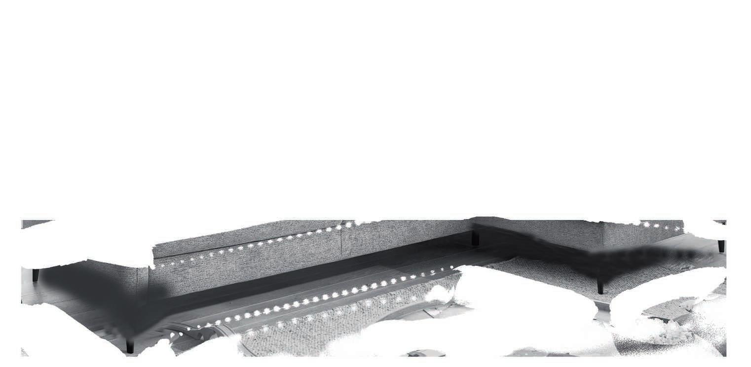 MM-PP1013, Bezug Stoff Belle silver, Metallfuß Alu, best. aus: 2,5-Sitzer mit Armteil links, Rücken Spannstoff, Eckelement, 2-Sitzer ohne Armteil und Anstellhocker rechts. Stellmaß ca. 254x274 cm.