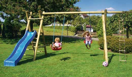 1. Schaukelbalken Ø 10 cm, mit Podest, inkl. Strickleiter und 2 Schaukelsitze, Montagematerial, Kiefer kesseldruckimprägniert, Maße: (B x T x H): 440 x 190 x 220 cm, ohne Rutsche und Bodenanker | statt 289,99 219,99 8002330