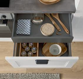 Leichtgängige Schubkästen mit optionalen Inneneinteilungen bieten optimalen Stauraum und perfekte Übersicht.