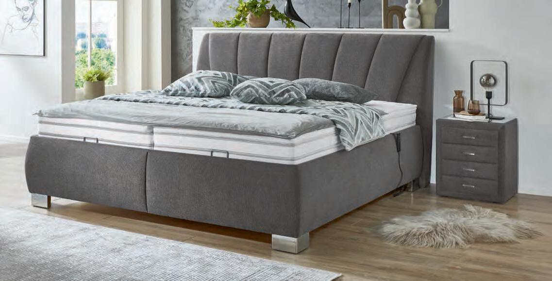 MOTOR-POLSTERBETT OC-PB 23155, Bezug Stoff Billie anthrazit, Metallfuß chromfarbig, best. aus Kopfteil, Unterbau mit Bettkasten, 2x Lattenrahmen mit Motorverstellung, 2x Kaltschaummatratze H3/H4, Liegefläche ca.