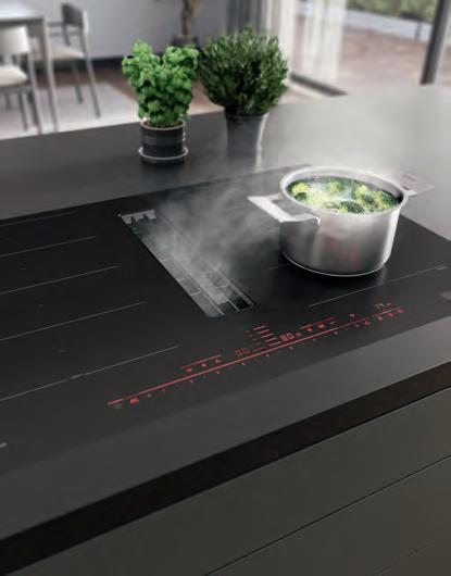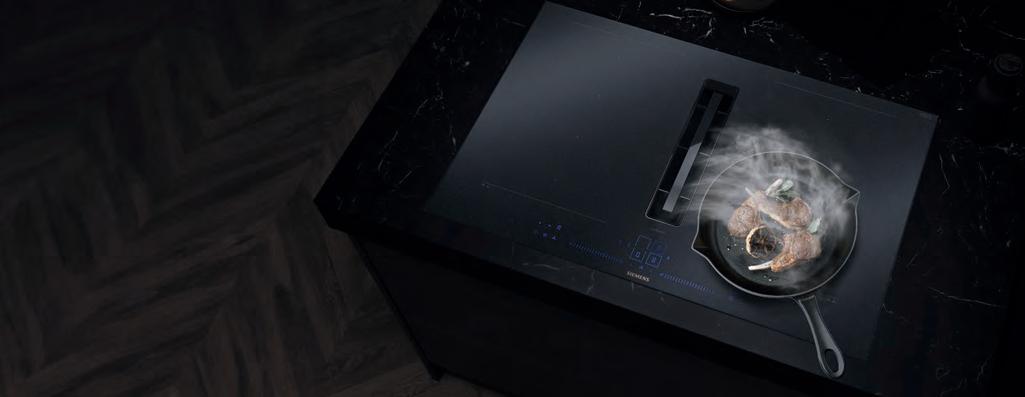 Die neuen Serie 8 Induktionskochfelder mit integriertem Dunstabzug im Matt Design verbinden modernes, zeitloses Design mit innovativer Funktionalität. Durch die matte, tiefschwarze Ästhetik wird die Sichtbarkeit von Kratzern und Fingerabdrücken deutlich reduziert.