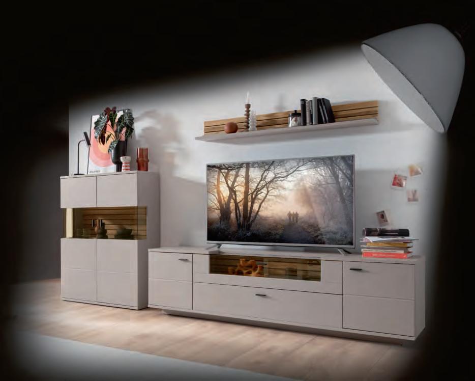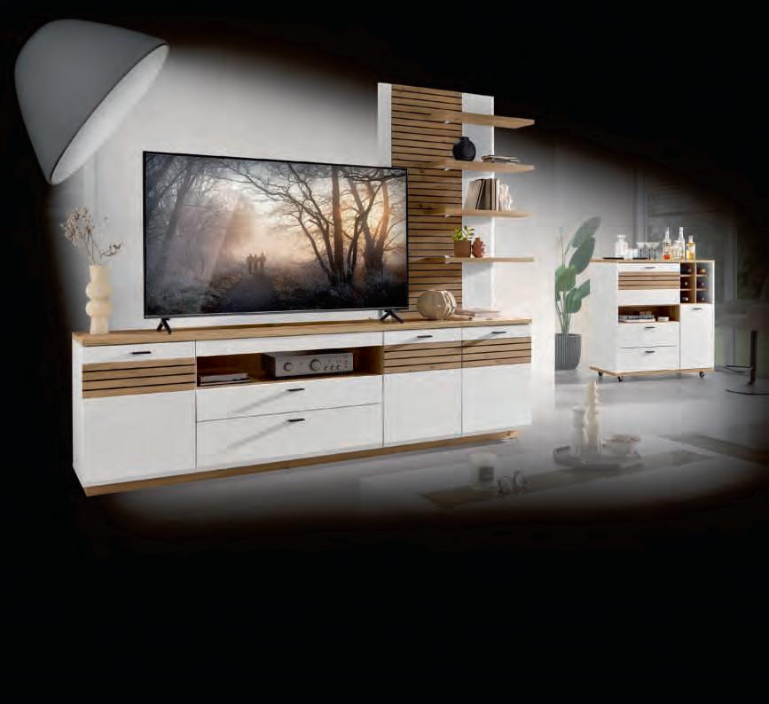 WOHNWAND, best. aus Paneel, Unterschrank und TV-Board, ca. B266/H223/T47 cm.