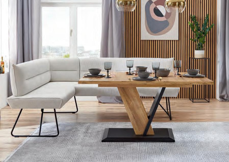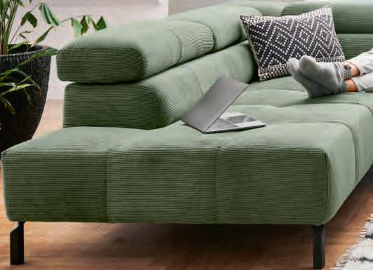 ECKKOMBINATION, Bezug Cord Fjord beige, Füße Metall schwarz pulverbeschichtet, Stellmaß ca. 256x180 cm, Liegefläche ca. 93x221 cm, inkl. 3x manuelle Kopfteilverstellung, motorischer Sitztiefenverstellung und 2x Kissen. Bezug: 100% Polyester