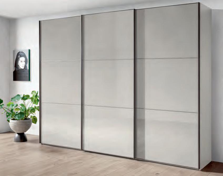 SCHWEBETÜRENSCHRANK, 3-türig, Front und Korpus ChampagnerDekor, Griffleisten schieferfarbig, inkl. Innenausstattung: 2er-Set Selbsteinzug mit Dämpfung für Außentüren, 3er-Set Einlegeböden, Wäscheboden-Einsatz, 2 Einlegeböden, 1 Kleiderstange, ca. B300/H236/T67 cm. Wiemann Phönix M450401 253 404 6457