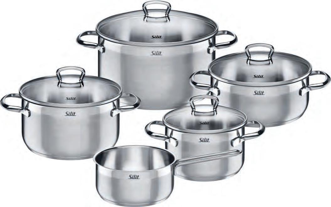 5-TLG. TOPFSET, Edelstahl rostfrei 18/10, spülmaschinenund backofengeeignet, für alle Herdarten geeignet, hitzebeständig bis 250°C ohne Deckel bzw. 180°C mit Deckel, best. aus: Bratentopf Ø ca. 20cm,