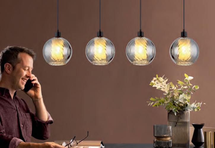 PENDELLEUCHTE, Metall schwarz matt, Glaskugeln rauchfarben, Opalglas innen, 4x E27 max. 25W, B/H/L ca. 20/120/110 cm, ohne Leuchtmittel Abgebildete Leuchtmittel nur Dekoration.