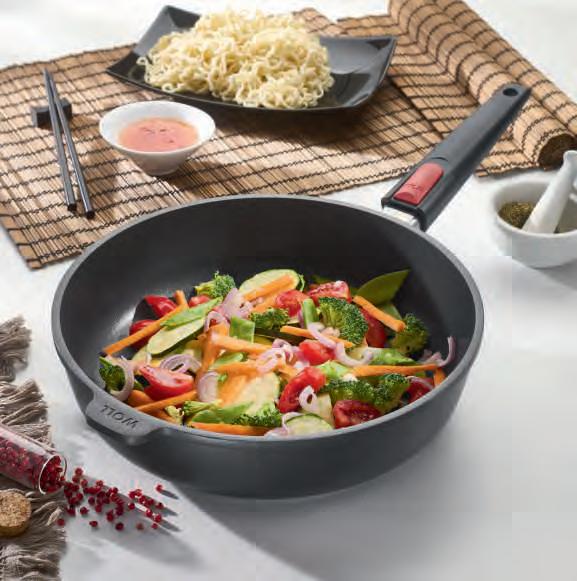 HOCHRANDPFANNE, Gusseisen, Aluminium, fünflagige NowoTitan-Beschichtung, schnitt- und abriebfest, backofenfest bis 220°C, Ø ca. 28 cm. Nowo