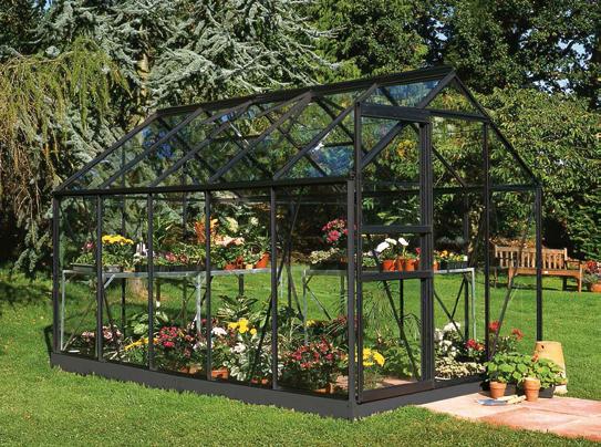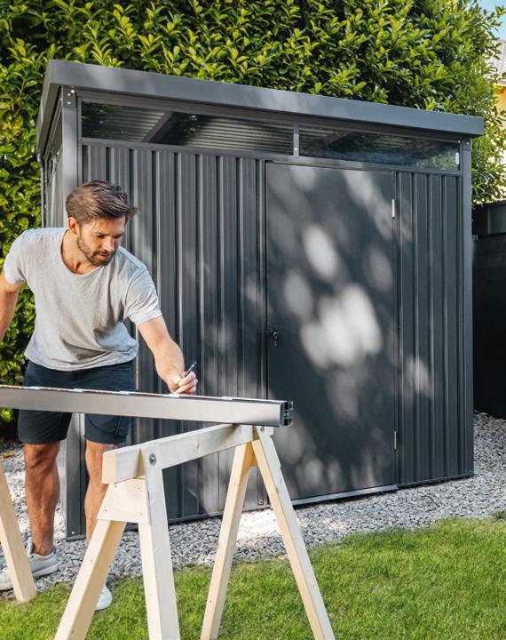 Anthrazit, Wände und Dach 0,4 mm, max. Schneelast: 150 kg/m², Grundfläche 4,43 m², Oberlichter mit Schiebefunktion zum Öffnen, Maße inkl. Dachüberstand: B 245 x T 204 x H 226 cm. (o. Boden).