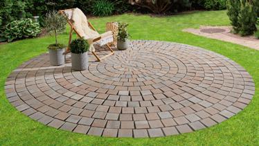 Attraktives Pflasterkreissystem Ø 197 cm, natürliche, nuancierte Farbgebung, juranuanciert oder vulkananthrazit, Oberfläche betonglatt, gefast, PKW-befahrbar, frost- und tausalzbeständig. Art.-Nr. 7645369 u.a. (heyOBI-Vorteil 39,34 €/m2) (42,62 €/m²)