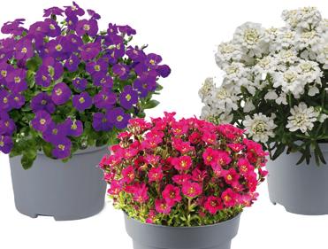 Verschiedene Farben, winterhart, Topf-Ø ca. 9 cm, Blütezeit: März - Juni und September - Oktober. Art.-Nr. u.a.