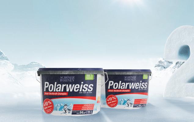 ¹gegenüber dem 10-l-Standardgebinde. ²Teilnahme- und Bestellbedingungen: Die Teilnahme ist nur möglich, wenn du älter als 18 Jahre alt bist mit Wohnsitz in Deutschland oder Österreich. Ausgenommen sind Mitarbeiter von OBI und J. D. Flügger. Beim Kauf von zwei 11-Liter-Aktionseimern SCHÖNER WOHNEN Polarweiss (Art.-Nr. 9814559) erhälst du einmalig 25€ per Banküberweisung erstattet. Nur Aktionseimer mit Cashback-Hinweis auf dem Deckeletikett sind teilnahmeberechtigt. Keine Kombination mit anderen Aktionen möglich. Die vollständigen Teilnahmebedingungen findest du unter www.polarweiss.com/cashback. Veranstalter: J. D. Flügger – A