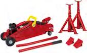 Bestehend aus einem Hydraulik-Rangierwagenheber mit zwei Tonnen Tragkraft, zwei Unterstellböcken und zwei Bremskeilen. Art.-Nr.6519029