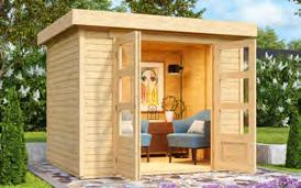 Aus unbehandeltem Holz, Wandstärke von 19 mm sorgt für die notwendige Stabilität, B 242 x T 238 x H 211 cm, in weiteren Größen und Ausführungen erhältlich. (o. Dekoartikel/Boden) Art.-Nr.3101557u.a.