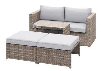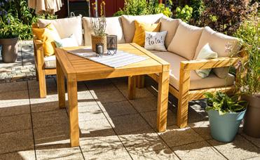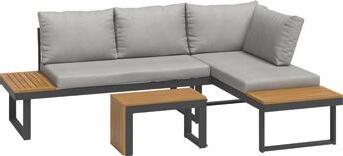 Aus FSC®-zertifiziertem Akazienholz, inkl. bequemer Auflagen aus 100 % Polyester, bestehend aus zwei ZweisitzerSofas mit Armlehne links/rechts, einem Eckteil und einem Tisch, Art.-Nr. 3952165