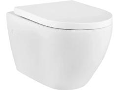 wandhängendes WC-Set aus Keramik, spülrandloses Design für einfache Reinigung, Soft-Close-System für sanftes Schließen, Maße: 50,5 cm x 37 cm.