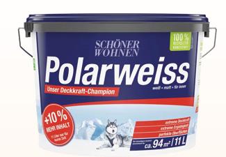SCHÖNER WOHNEN INNEN- UND WANDFARBE POLARWEISS MATT 11 L hohe Ergiebigkeit von 94 m² bei einmaligem Anstrich, geruchsarm und umweltverträglich, ohne Weichmacher und Lösemittel. Art.-Nr. 9814559 (4,09 €/l)