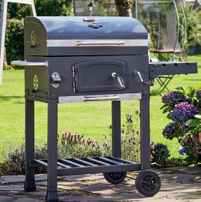 Zum Grillen und Räuchern, fahrbar, Deckelthermometer, Grillrost aus emailliertem Gusseisen, Gesamtgrillfläche: 57 x 41,5 cm, B 103 x H 104,5 x T 63 cm. Art.-Nr. 5248133