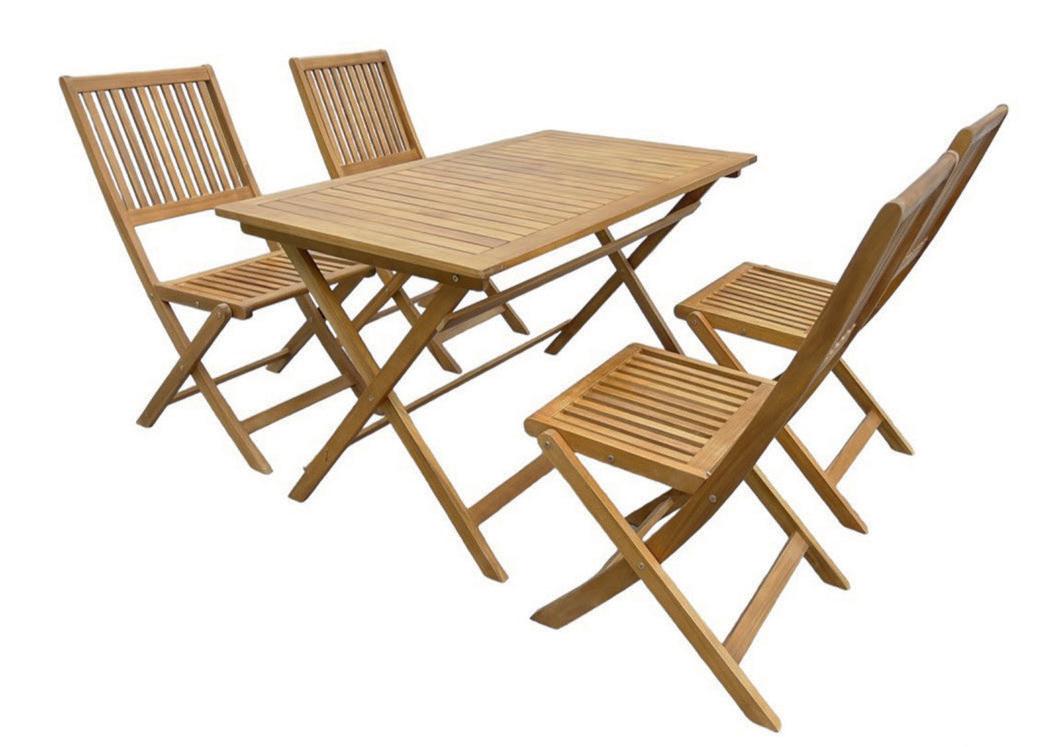 Aus FSC®-zertifiziertem Akazienholz, inkl. bequemer Auflagen aus 100 % Polyester, bestehend aus zwei ZweisitzerSofas mit Armlehne links/rechts, einem Eckteil und einem Tisch, Art.-Nr. 3952165