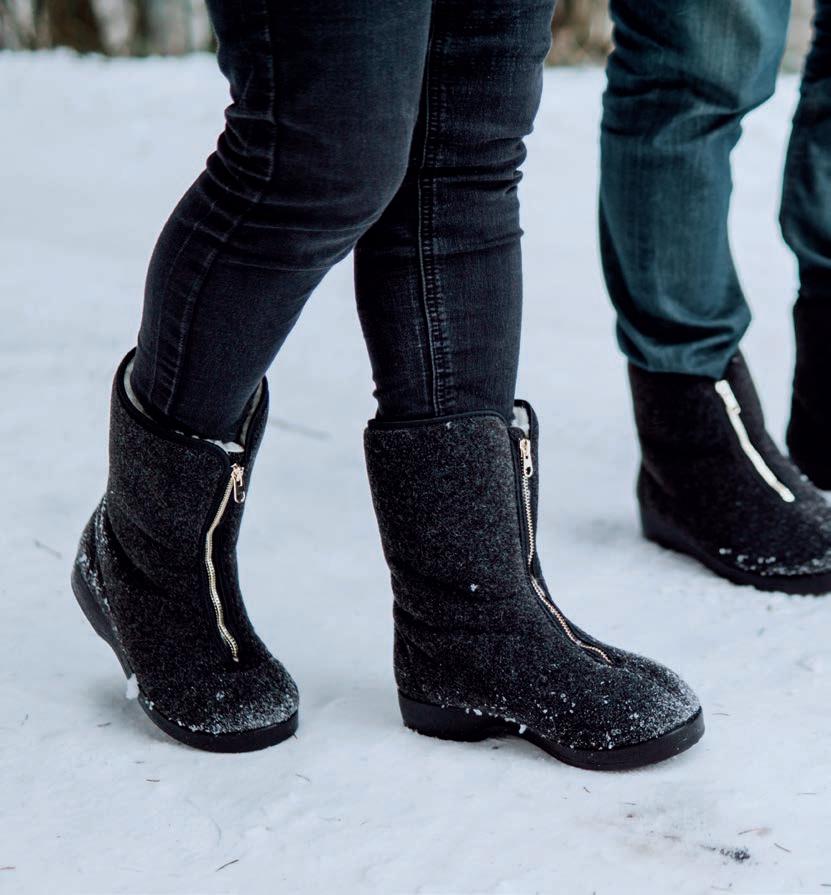 Měkoučké obutí čistě jen z ovčí vlny. Přírodní: vel. 36–45. Tmavě šedá: vel. 34–47. Hnědá: vel. 36–47.