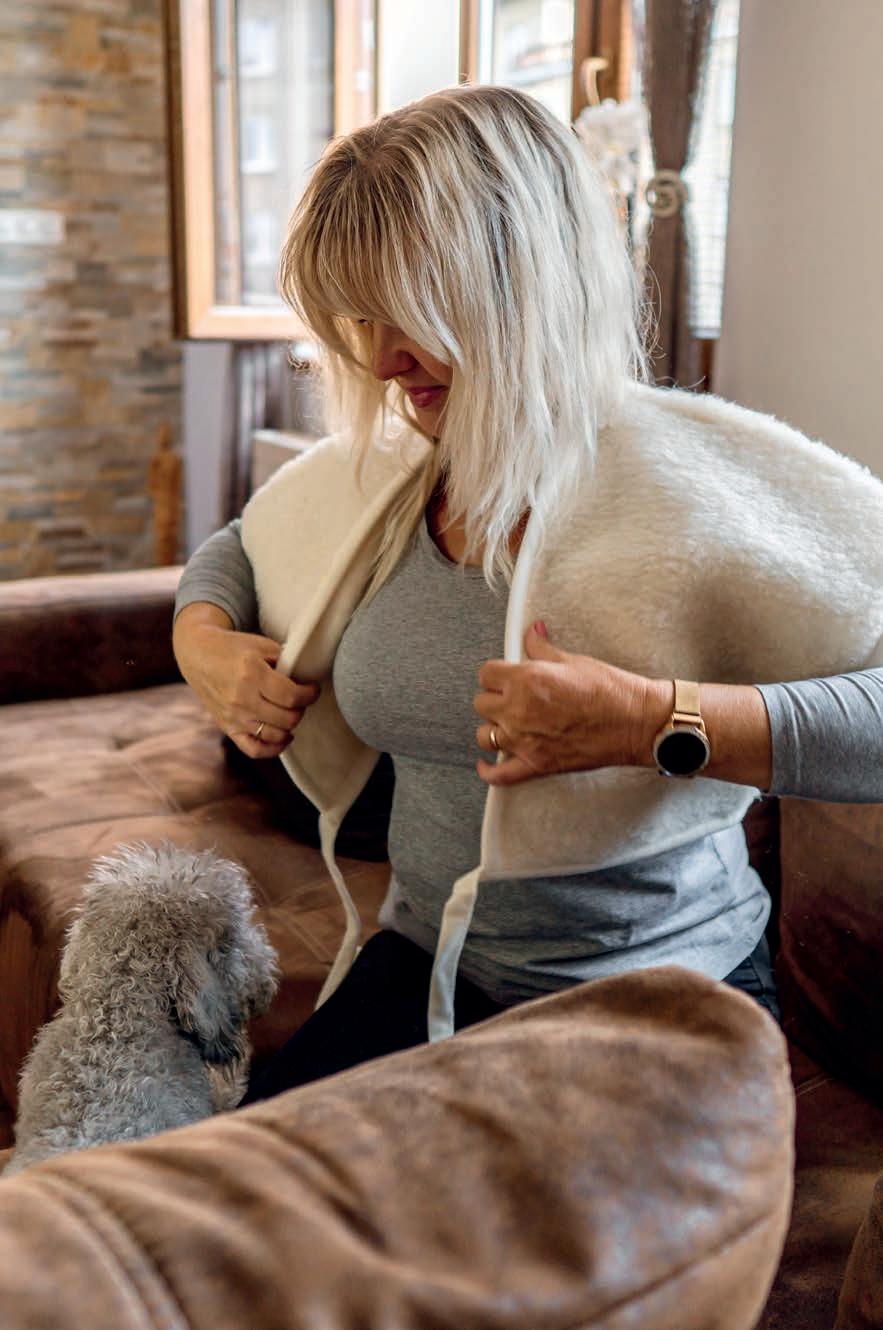 Bei geschwollenen Gelenken, rheumatischen Beschwerden oder einem Schwächegefühl können Sie es mit einer elastischen Bandage oder einem Überzug aus Schafwolle versuchen.