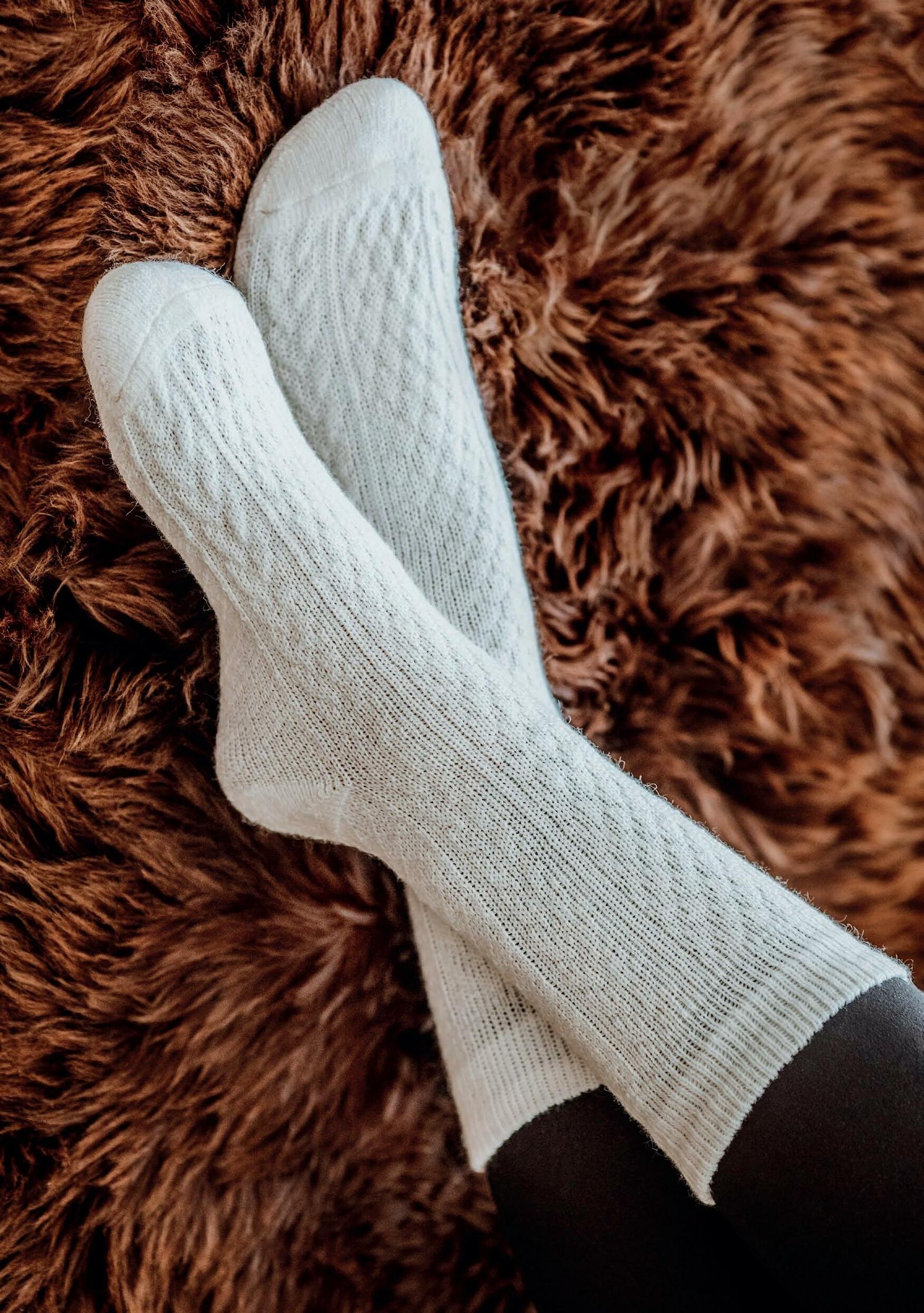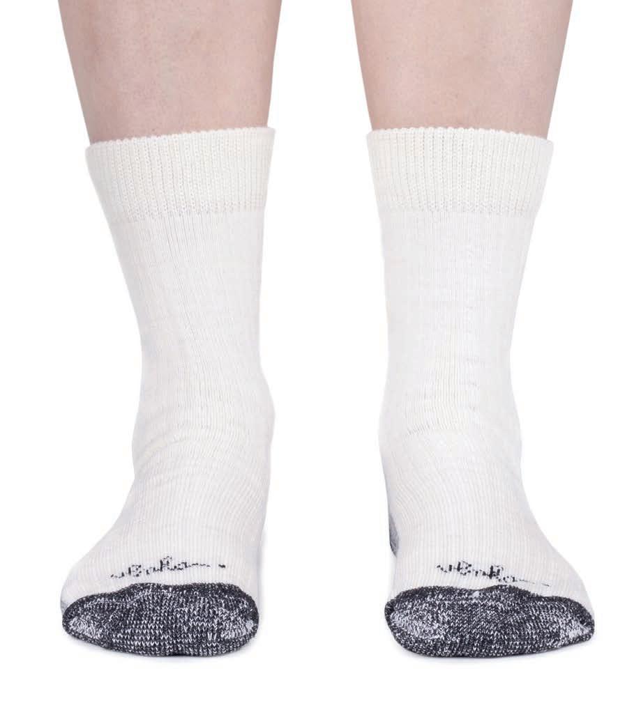 Um die Durchblutung Ihrer Füße zu fördern, sollten Sie elastische Socken aus 100 % Merinowolle tragen, die die Blutzirkulation fördern und Sie warm halten.