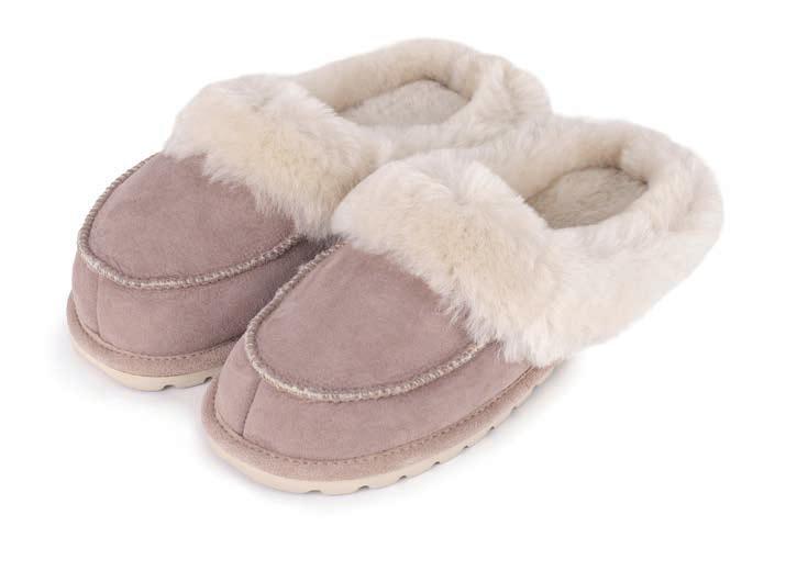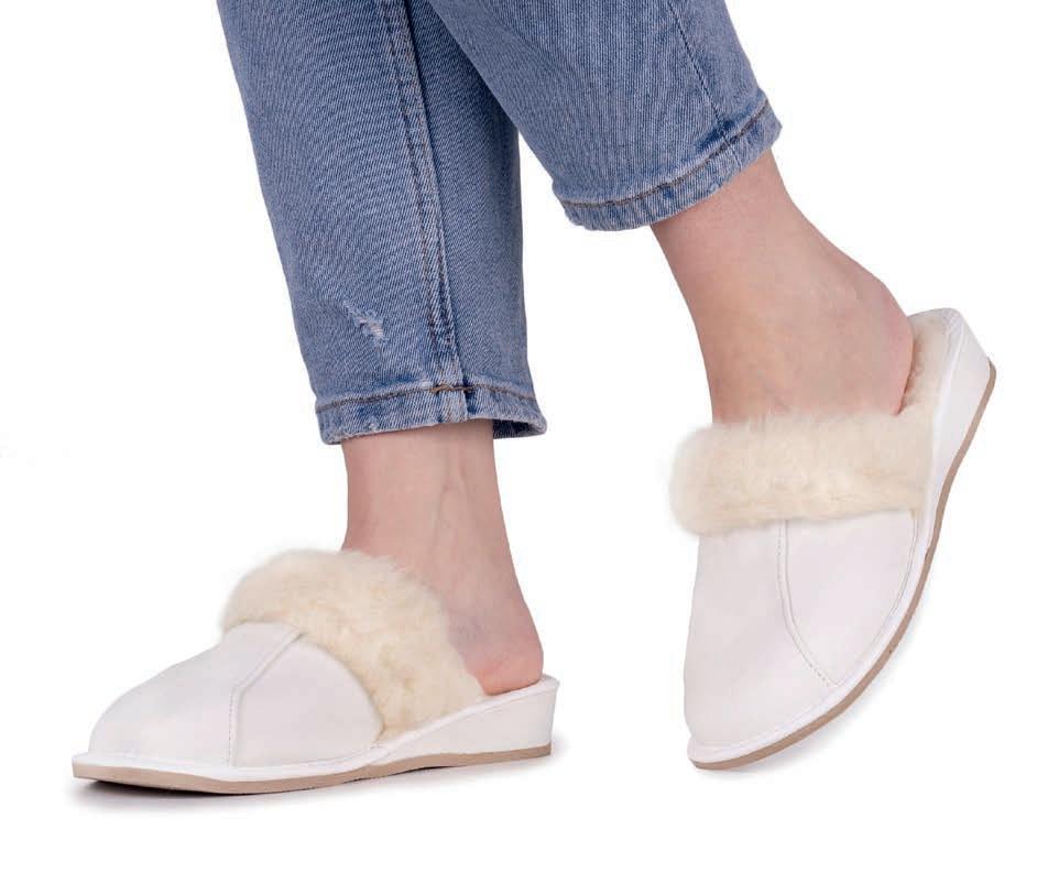 PANTOFFELN VANESA Luxuriöse Hausschuhe aus Schafsleder und Wolle mit Pelzbesatz. Gr. 36–42.