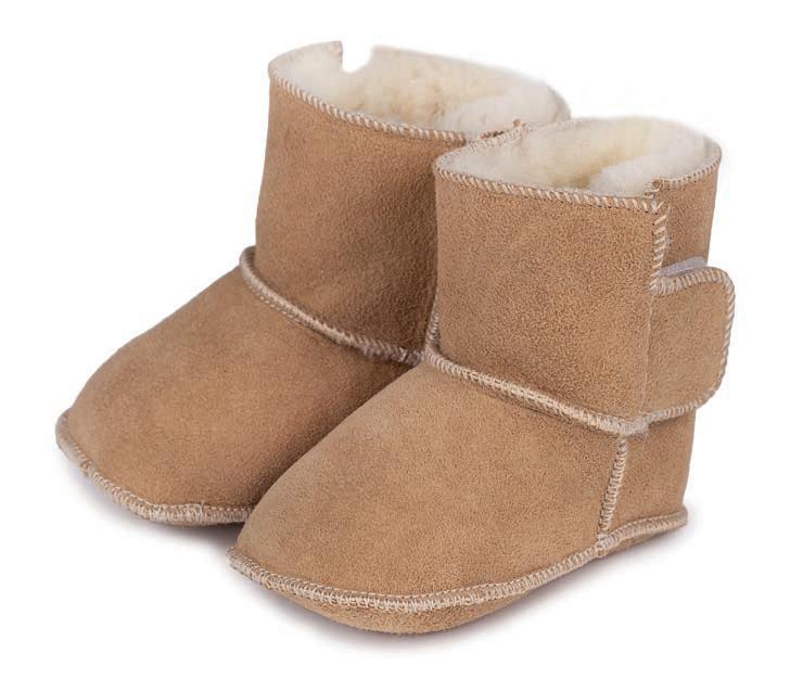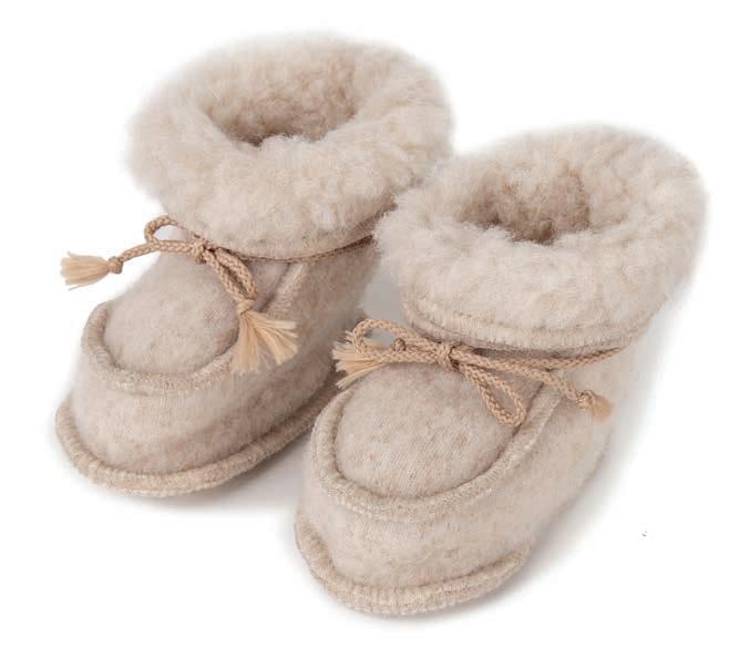 Das Schafsleder passt sich perfekt den Kinderfüßen an und die Wolle hält sie warm. Gr. 24–34.