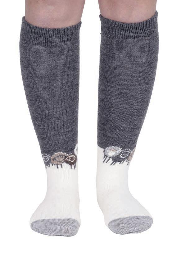 Ein flexibles Gummiband am oberen Rand erleichtert das Anziehen. Schafwolle wärmt von den Zehen bis zu den Knöcheln. Gr. 36–42.