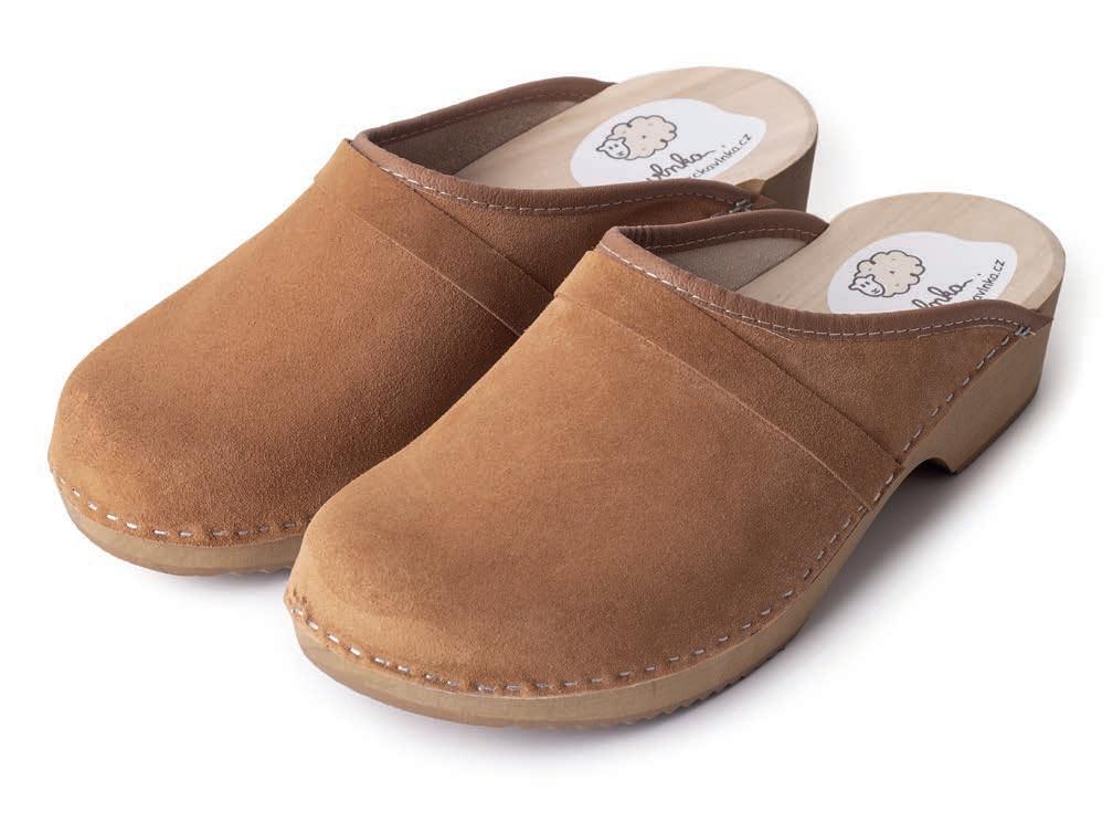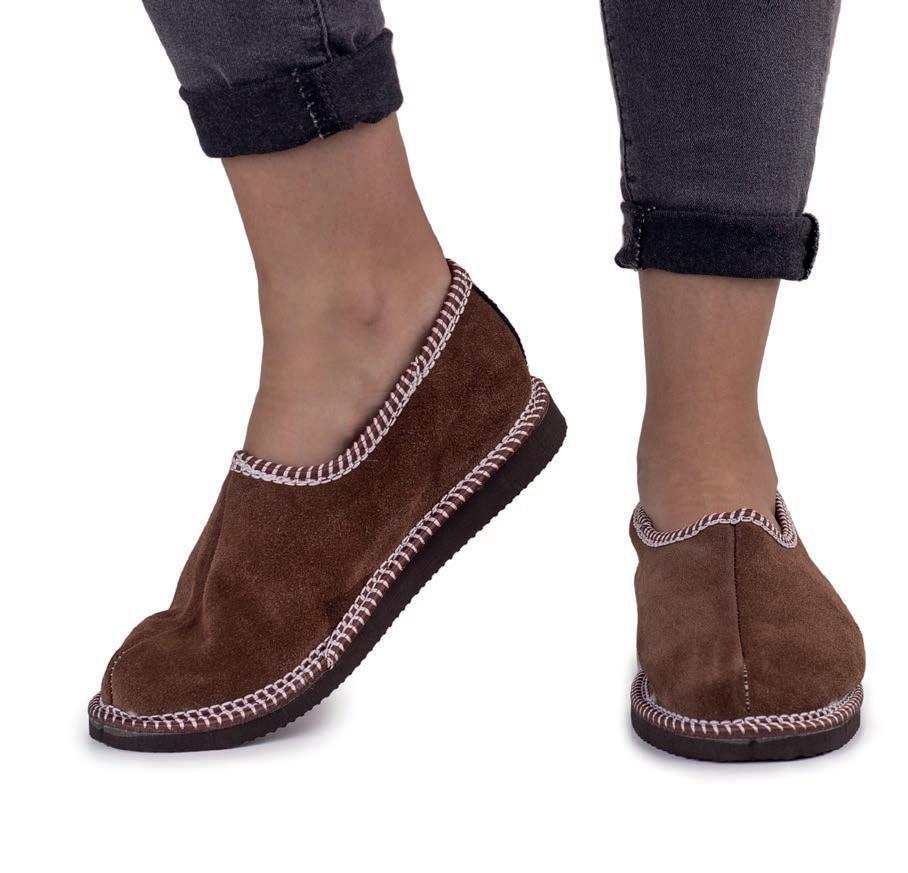 Klassische Lederpantoffeln mit Schafwolle für Damen und Herren. Damen mit Wollsaum: gr. 36–42. Herren: gr. 41–47.