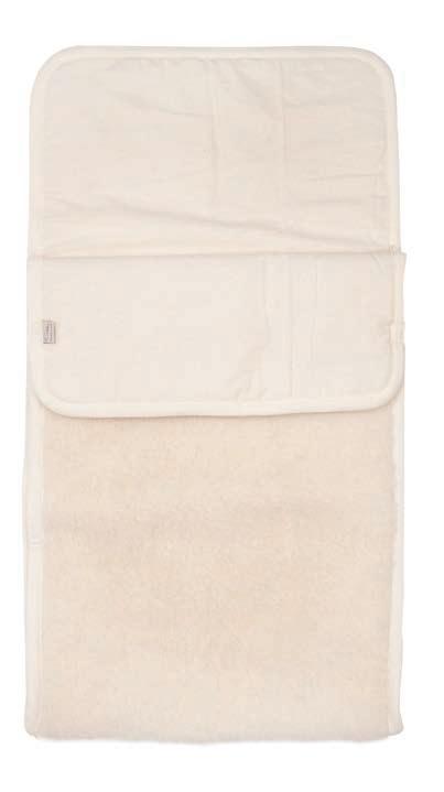 Die Wolle im Bettlaken hilft, die Körpertemperatur zu regulieren und Feuchtigkeit abzuleiten. 60 × 120 cm.