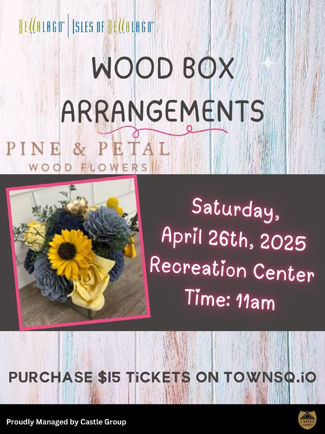 All events are held at the Bellalago Recreation Center unless otherwise specific and require an RSVP or paid ticket before the day of the event, unless otherwise specified. To purchase tickets or RSVP for an event, please visit the TownSQ app, www.TownSQ.io or email Michelle Thomas, Lifestyle Director, at Michelle.Thomas@CastleGroup.com. Events, ticket prices, cancellations, and details are all subject to change at any moment.