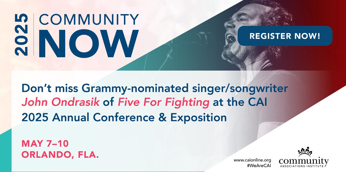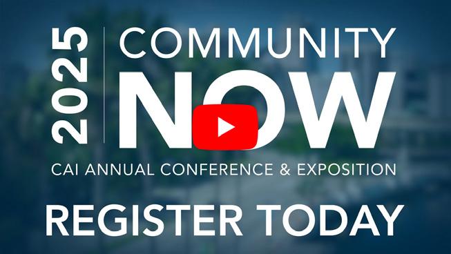 Join us for the ultimate gathering of community association managers, homeowner board members, and business partners at the 2025 CAI Annual Conference and Exposition: Community NOW. Connect with old friends and meet new ones at spectacular networking events, inspiring education sessions, and the world-class exhibit hall showcasing the latest technology and solutions for community associations.