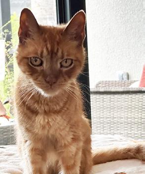 Enzo, a handsome 14-year-old orange tabby, has been with Toni since he was just a kitten. She adopted him from a shelter in New York, and the moment she laid eyes on him, she knew he was meant to be hers. Enzo recently celebrated his birthday in August and still acts like a spry young gentleman, especially when he’s basking in the early morning sun out on the lanai—a daily 6 a.m. ritual he never misses. Known for his sweet nature, Enzo is a friend to everyone he meets. His favorite treat? Anything chicken-flavored! Though he has one mischievous habit—scratching new furniture—his gentle, affectionate demeanor more than makes up for it.