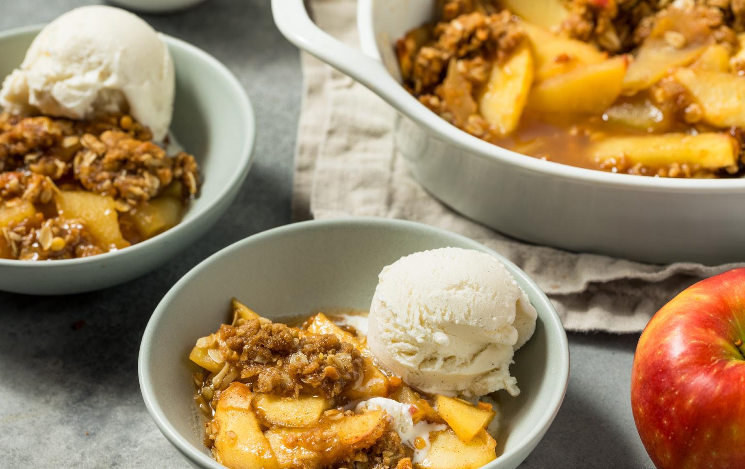 7. Bake for 40 - 45 minutes, or until the topping is golden and the apples are tender and bubbling around the edges.