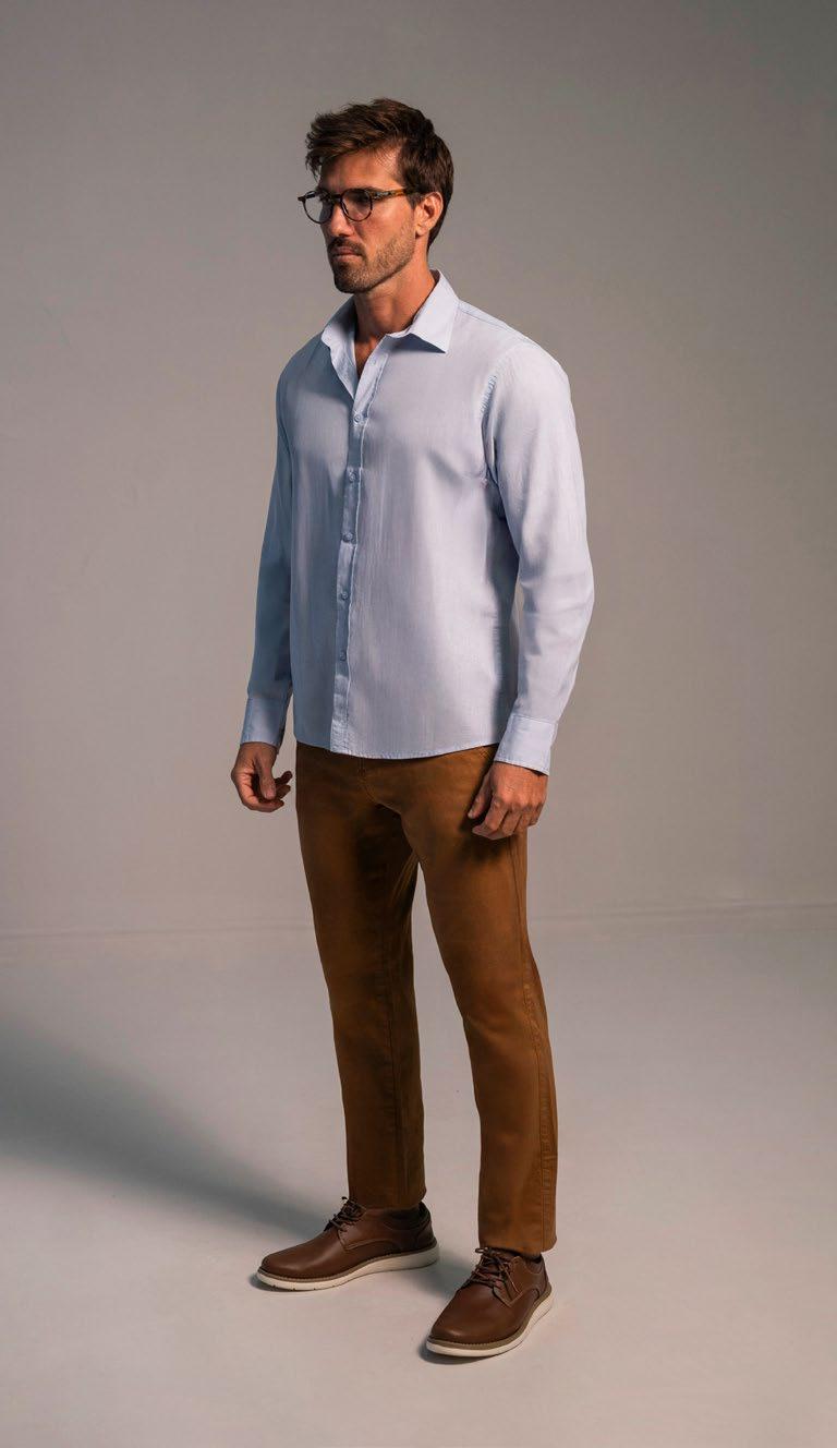 Com fios refinados, toque leve e caimento estruturado, esse tecido natural acompanha com sofisticação os diferentes momentos do dia — do trabalho à ocasião especial, sem perder o frescor e a autenticidade.