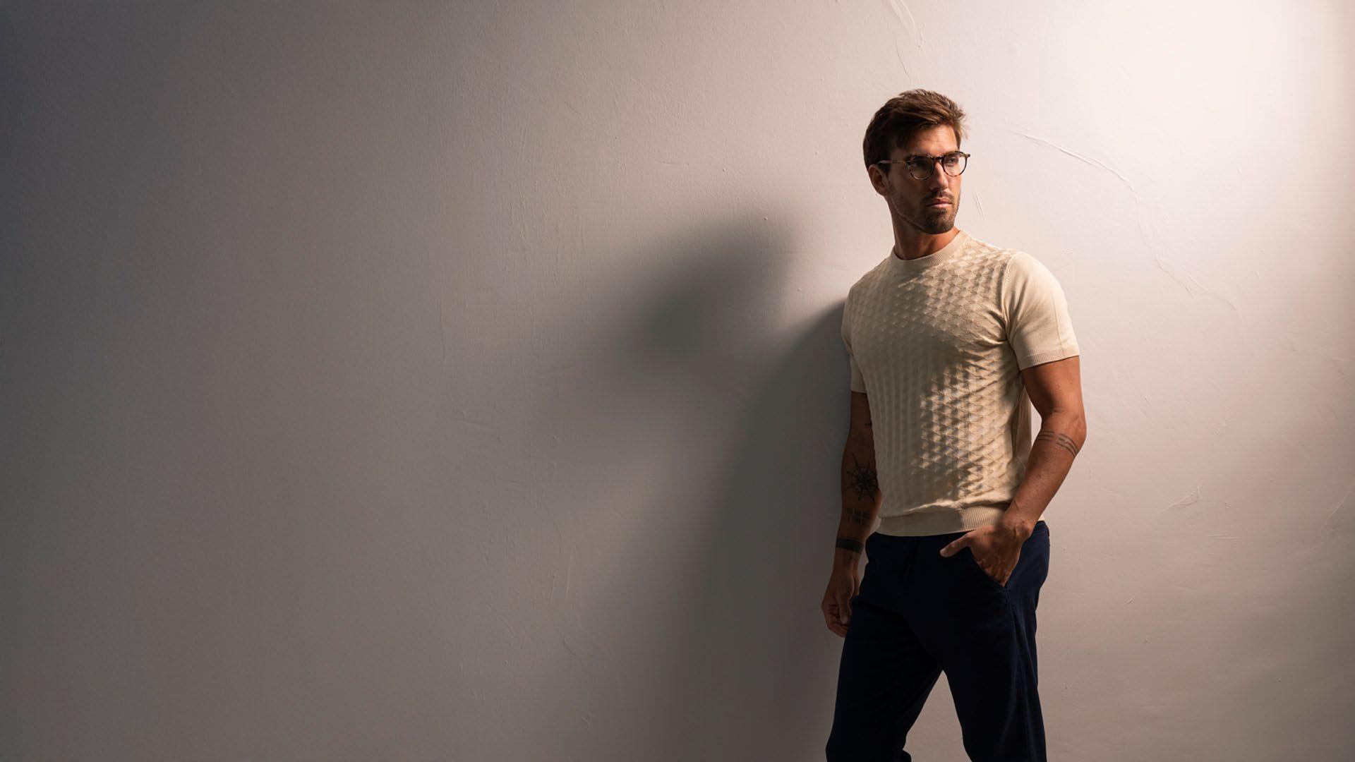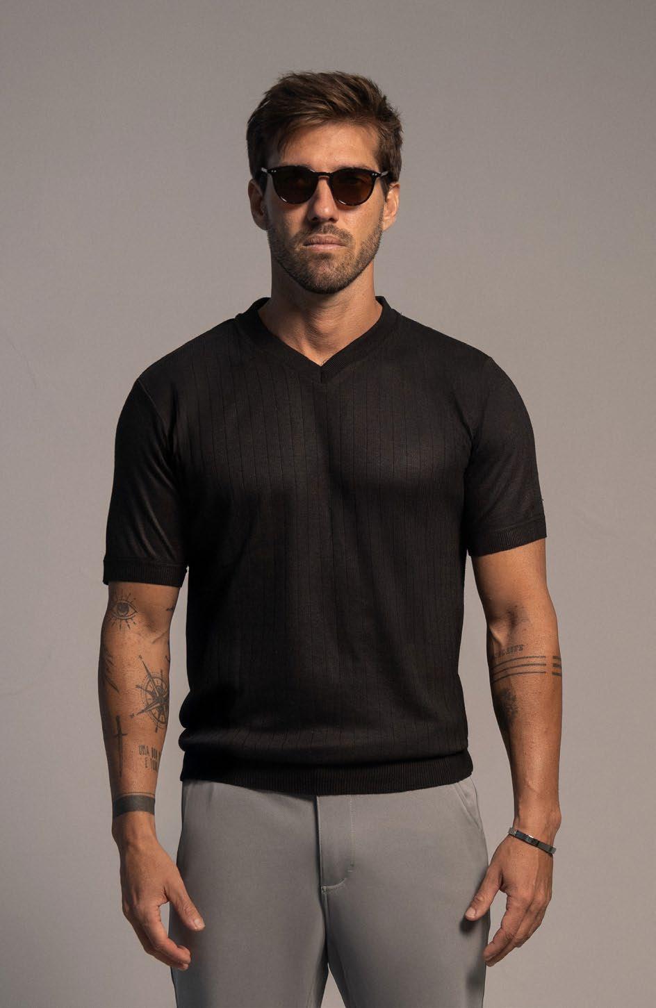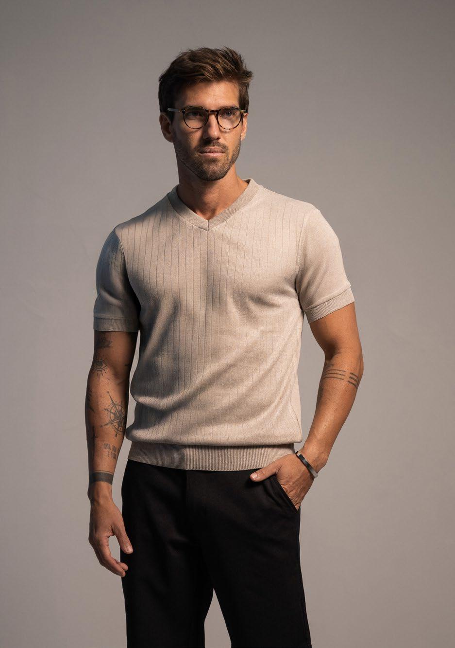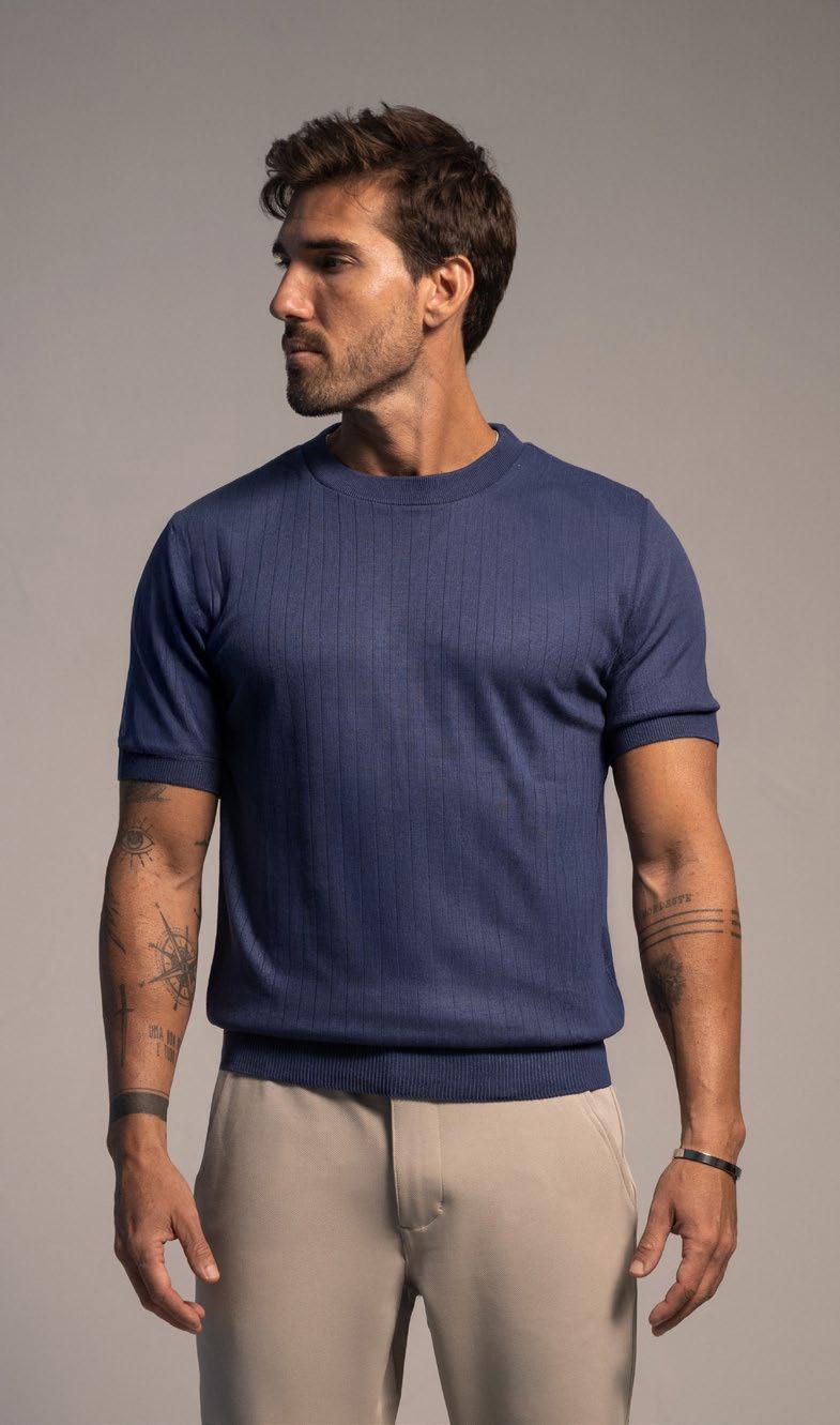 A T-shirt em tricot une conforto, sofisticação e personalidade em uma peça essencial do guarda-roupa masculino.