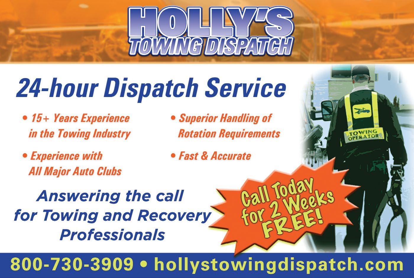 Tow Professional is distributed to qualified Towing & Recovery’s Top Decision Makers. Publisher is not liable for all content (including editorial and illustrations provided by advertisers) of advertisements published and does not accept responsibility for any claims made against the publisher. It is the advertiser’s or agency’s responsibility to obtain appropriate releases on any item or individuals pictured in an advertisement. Reproduction of this magazine in whole or in part is prohibited without prior written permission from the publisher.