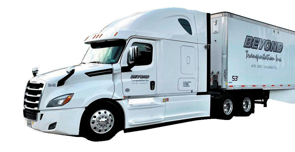 Follow us on @OverTheRoadMagazine @OverTheRoadMag @OverTheRoadMagazine 300 Melair Drive Ayr, ON N0B 1E0 beyondtransportationinc.com Contact Randy Baker 1-877-665-6015 randyb@beyondtransportationinc.com We are now Hiring Highway Drivers & Owner Operators JOIN OUR TEAM! Steady weekly runs to Florida Flexible time off Paid Hub miles All picks and drops paid Waiting time paid EZ pass for scales and bridge cards Bi-weekly direct deposit Benefits from day one Great dispatch team Minimum of 1 year of experience is required – AYR, ONT. / ORLANDO, FL.