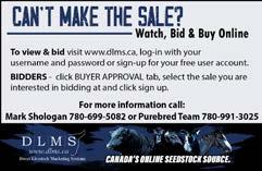 Animals will be sold singly or in lots to the highest bidder. Bidding will be carried out in CDN dollars.