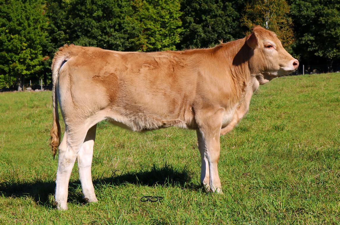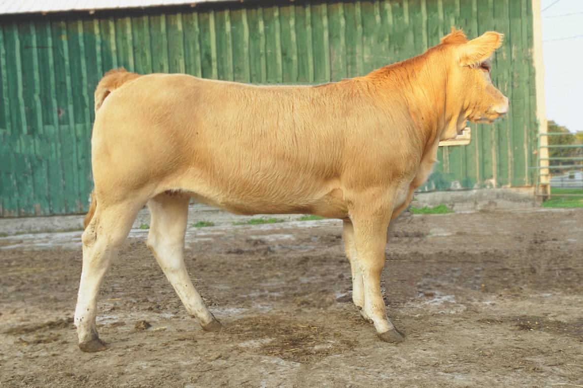 Here is a heifer that should be Alberta bound for the Nationals! Mittens has femininity, style and performance all rolled into one. Great package backed by some of the most proven pedigrees in the Blonde breed. Dusty Acre Finally 25F has given us great calves. Her dam Franmar Elizabeth 11E could be our widest cow in our herd and as they say “ The apple doesn’t fall far from the tree”.