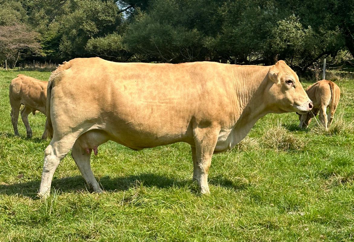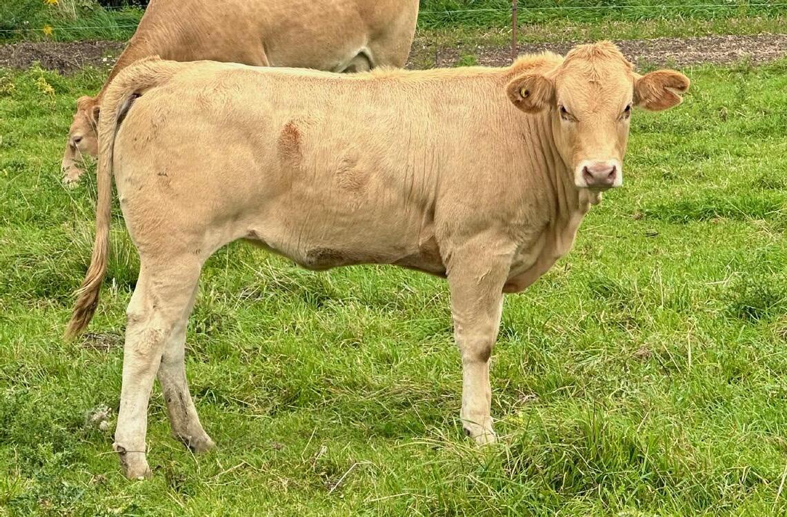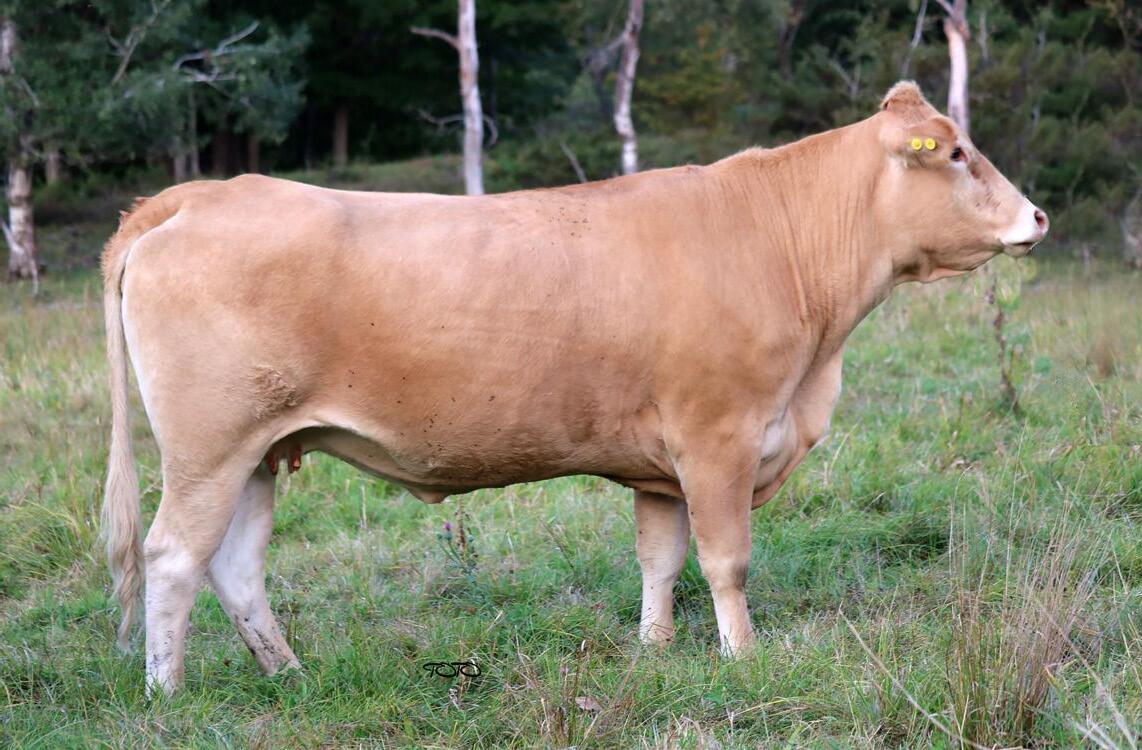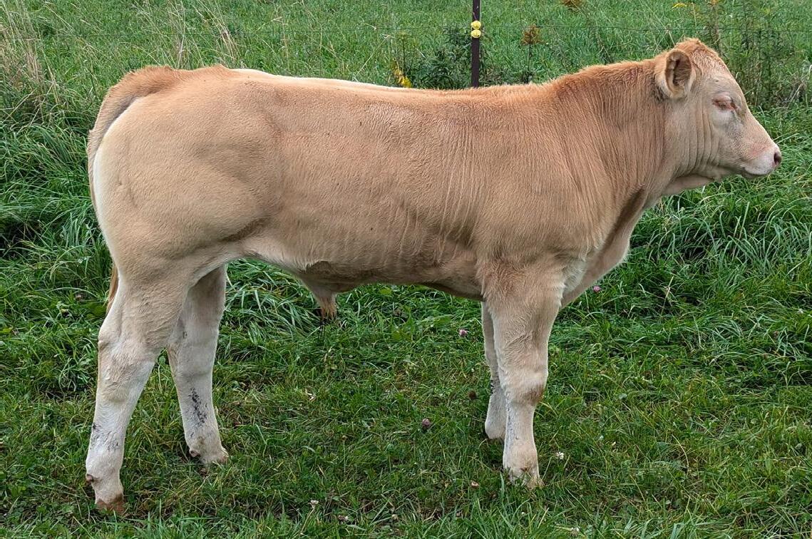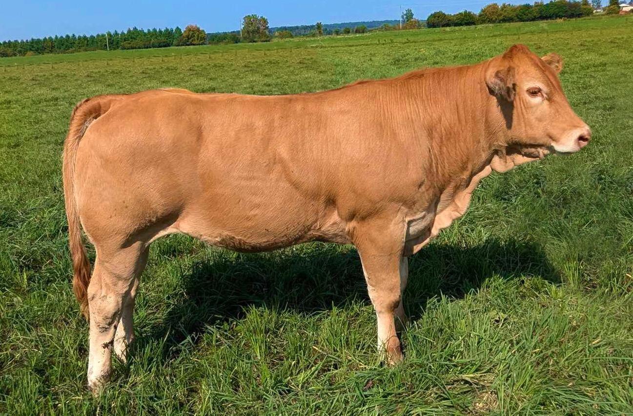 This is one outstanding heifer calf! Length, depth, muscle and tons of growth! Even some folds for udder development! Out of my Golden Glitter cow, a favorite at last years picnic. I was questioned on ringing her 2023 Uvay bull calf. This year I got the heifer I wanted last year but have entered her into this years sale. If you like them big frame, lots of muscle, light in colour and still having a feminine face Magic is all of that. She will be a money maker for you.