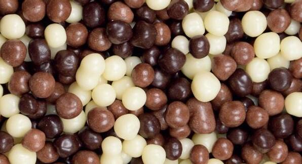 A tri-colour mix of light and crispy chocolate coated decorations.